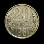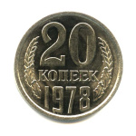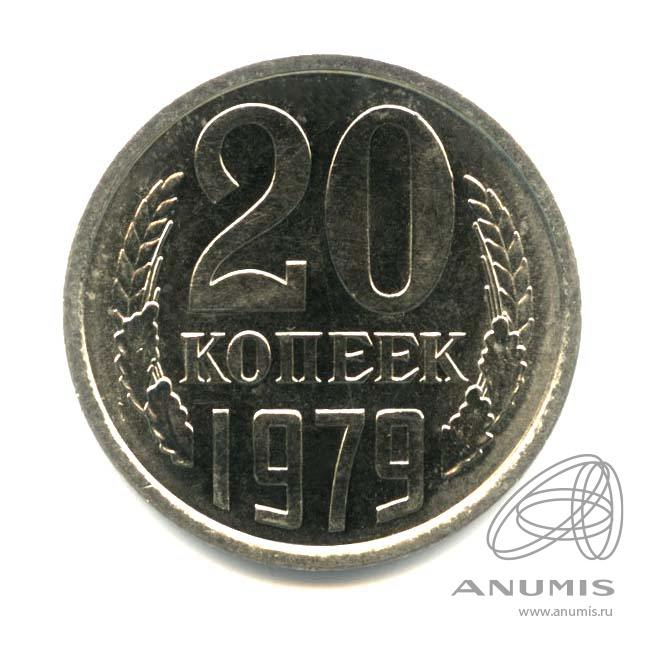 Монета регулярного выпуска: 20 копеек 1979 года. 20 копеек 1961 — 1991 гг. Союз Советских Социалистических Республик: СССР поздний (1961 — 1991). Медь-никель, 3 г, ø 22 мм, Гурт: Рубчатый.