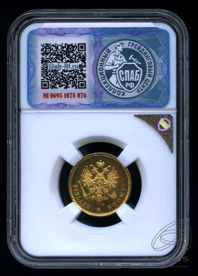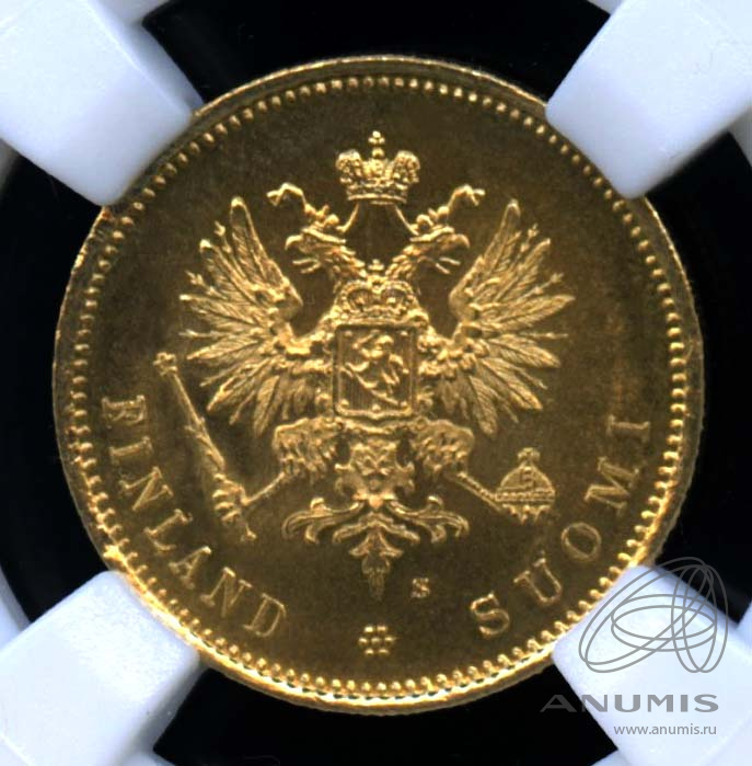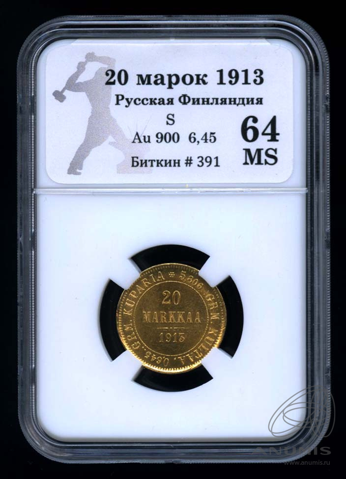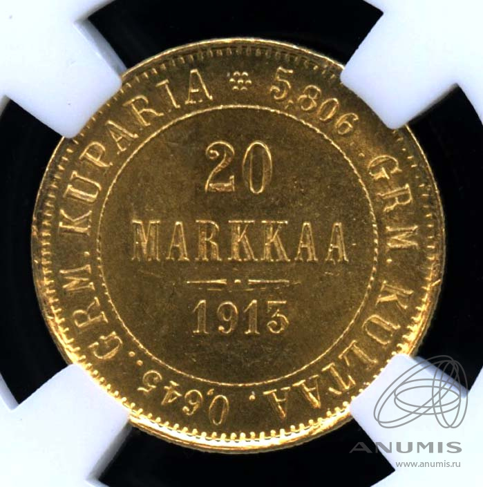 20 марок — Для Финляндии 1913 S. В оригинальном сертифицированном слабе® MS 64
